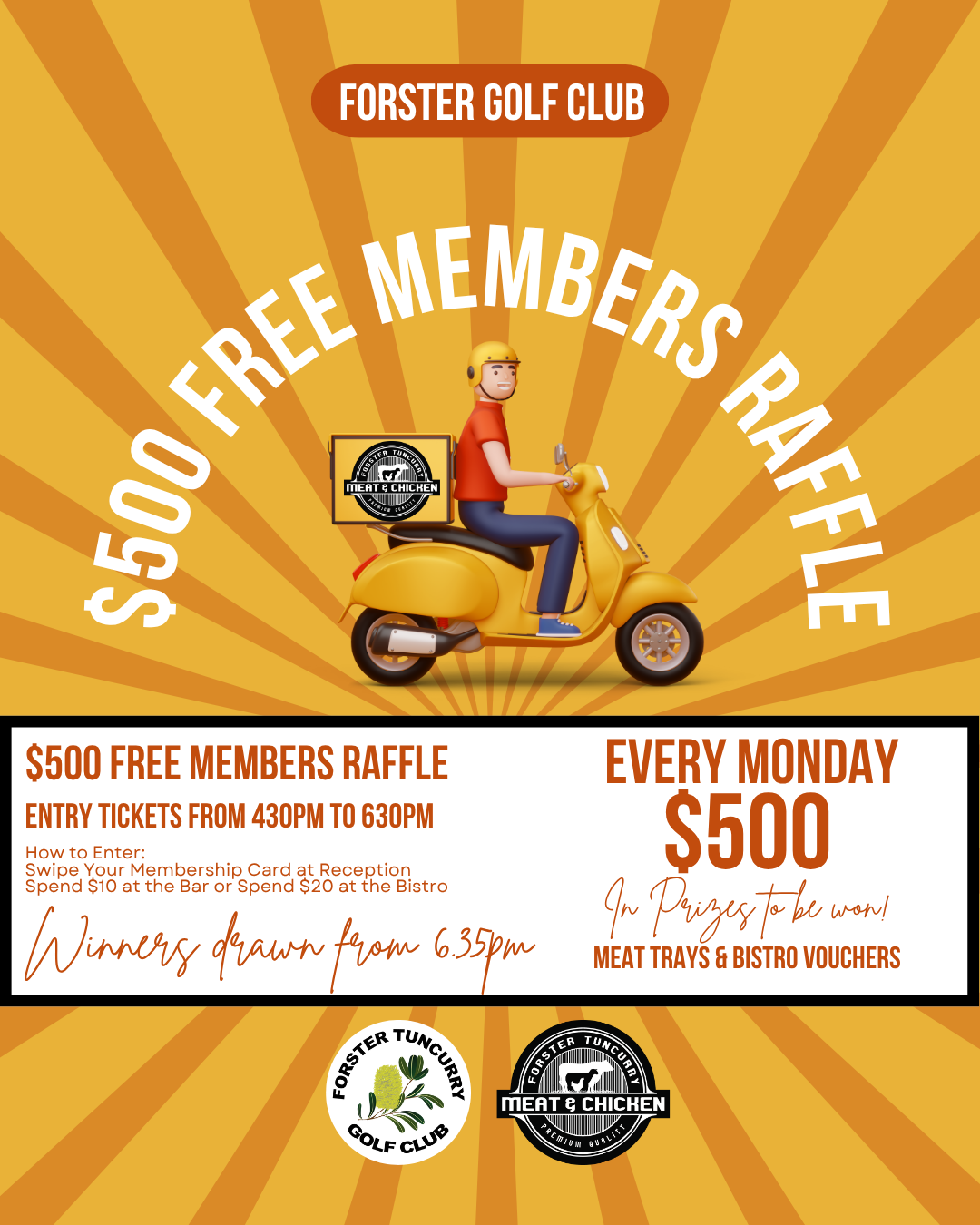 Score premium cuts and delicious meat trays every Thursday & Friday night! Grab your tickets from 6PM and get ready to win big at Forster Tuncurry Golf Club!